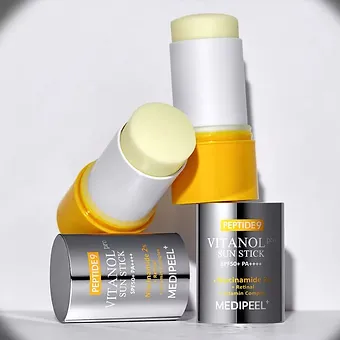 Medi-Peel Peptide 9 Vitanol Sun Stick — інноваційний сонцезахисний стік з антивіковим ефектом, що забезпечує надійний захист від UVA/UVB-променів та водночас працює як потужний доглядовий засіб. Його зручний формат ідеально підходить як для щоденного міського застосування, так і для поновлення SPF-захисту під час активного відпочинку.
